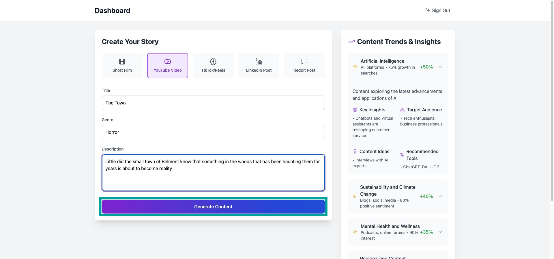 Step 9: Click Generate Content button